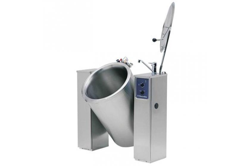 Food is uniformly heated in the base and side walls of the kettle by an indirect heating system that uses integrally generated saturated steam at a temperature of 108° C in the jacket with an automatic deaeration system. High thermal input and fast heat up. Automatic water filling of the double jacket. Ergonomic vessel dimensions, with a large diameter and shallow depth facilitates stirring and gentle food handling. Curved pan base guarantees that the appliance ia also suitable to prepare small quantities of food. Safety thermostat protects against low water level.