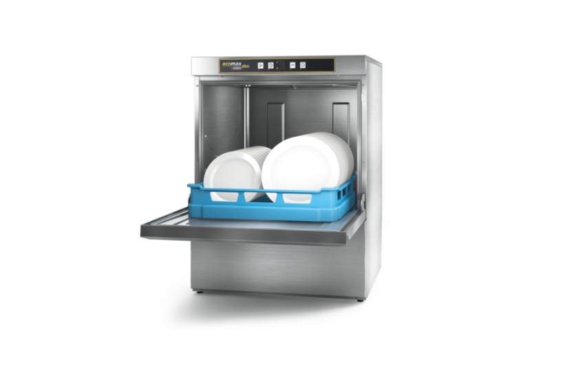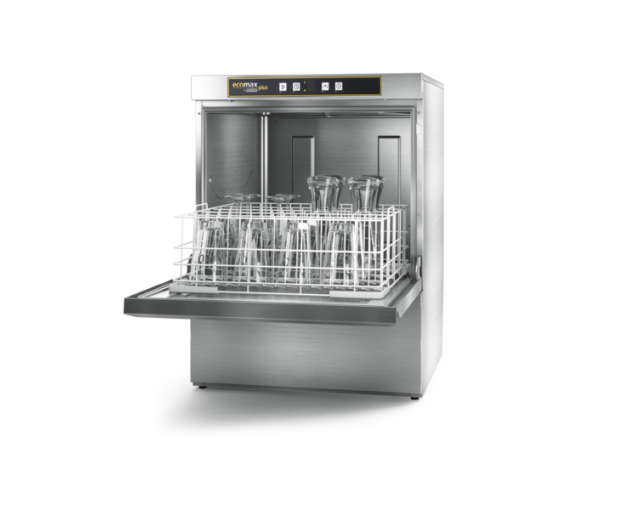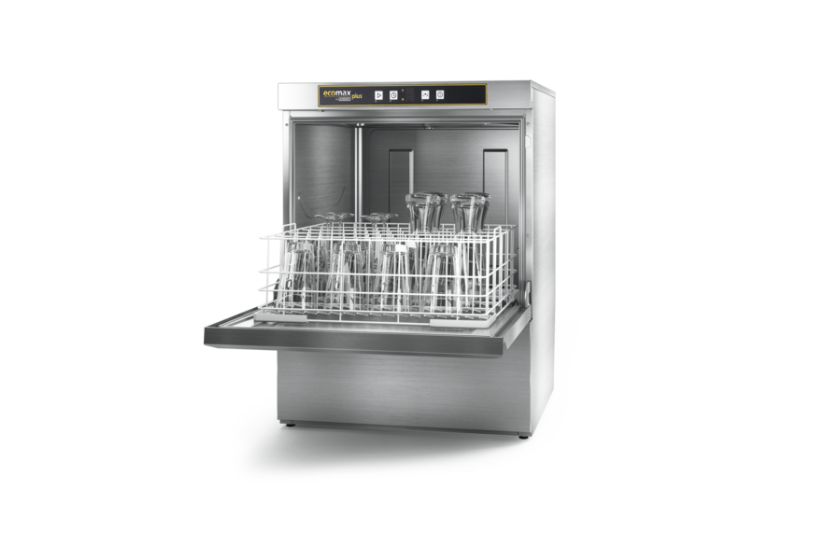 - Nominal capacity with double rack up to 80 racks/h (40 plate racks + 40 glass/cup racks)