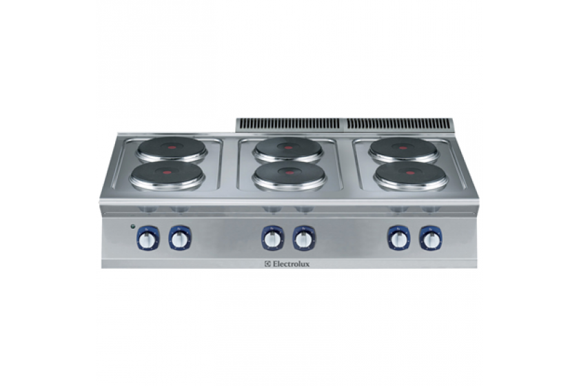 - The six 2.6kW cast-iron plates are hermetically sealed to the one-piece top.