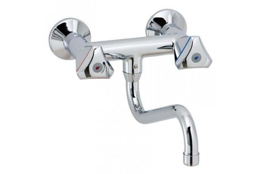 Main Features • Mounting hole: 29mm. Construction • Knobs made in chromium-plated high quality tecnopolymer that is resistant to temperature of up to 90°C. High flow and high durability stem valves. • Faucet body made in hard chromium-plated brass, massive heavy-duty construction and it is resistant to temperature up to 90°C. Monting shank: G3/4", 50mm long and ring nut for maximum stability and ease of installation. • Swivel spout chrome plated brass. • Center distance: 155mm. • Water flow: 3 bar=36 l/min.